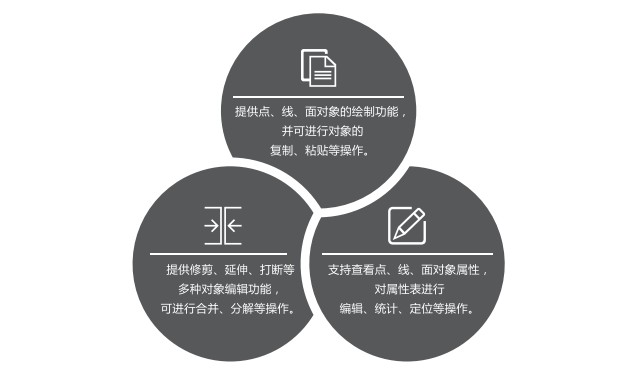 支持符號化繪制模式,同時獨創(chuàng)弦線繪制模式,相比其他GIS平臺,具有繪制效率更高、速度更快的優(yōu)勢,更適宜于數(shù)據(jù)編輯采集;