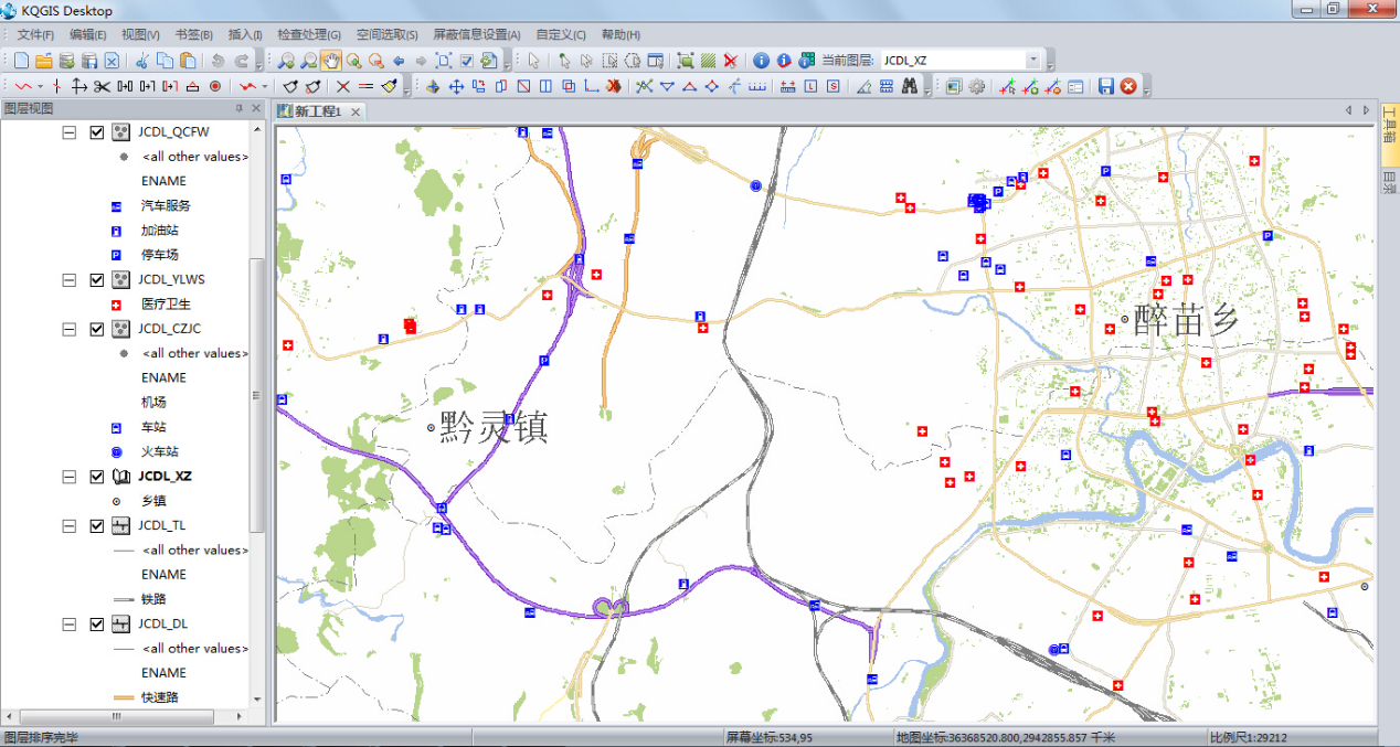 KQGIS Desktop采用多種地圖渲染方式,提供豐富的符號化表達,線型、顏色、文字的渲染極具美觀性。