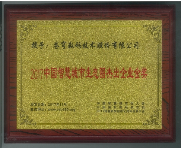 蒼穹數(shù)碼技術股份有限公司榮獲“2017年中國智慧城市生態(tài)圈杰出企業(yè)金獎”