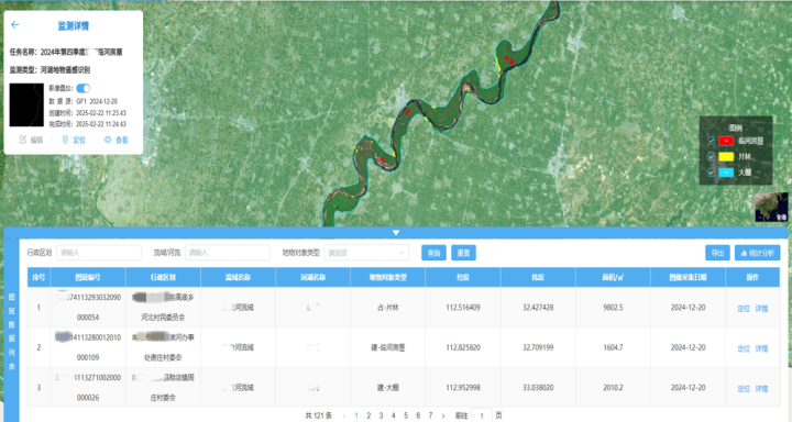 基于“四亂”智能提取模型,平臺(tái)能夠動(dòng)態(tài)監(jiān)測(cè)河湖水域岸線圈占、圍墾、采砂場(chǎng)、岸灘邊?。ǘ眩┩翀?chǎng)、垃圾堆放、建筑物等疑似問(wèn)題,及時(shí)發(fā)現(xiàn)亂占、亂建、亂堆、亂采等違規(guī)行為,顯著提升河湖監(jiān)管與執(zhí)法處置能力,守護(hù)河湖水域的健康與可持續(xù)發(fā)展。