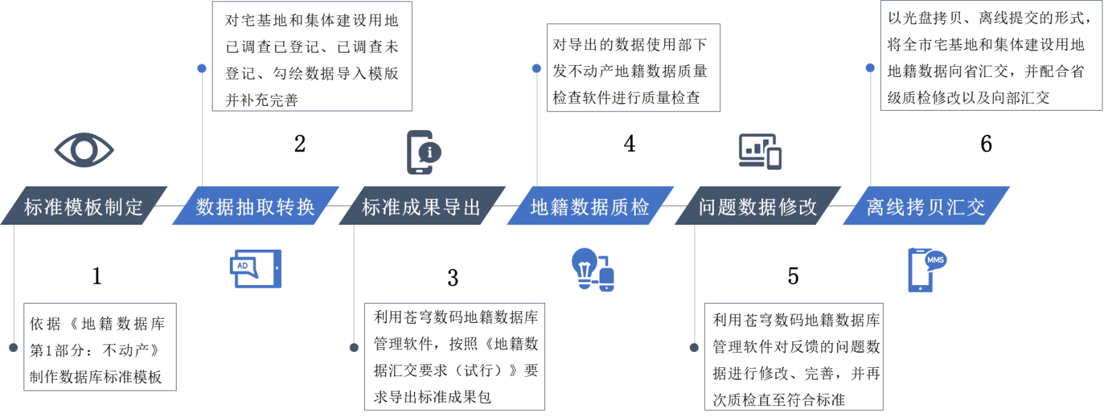 蒼穹數(shù)碼充分發(fā)揮在數(shù)據(jù)治理和質(zhì)檢匯交領(lǐng)域的深厚累積,針對(duì)黃山地籍?dāng)?shù)據(jù)庫“物理分散、邏輯集中”的管理現(xiàn)狀,快速制定了“標(biāo)準(zhǔn)模板制定—數(shù)據(jù)抽取轉(zhuǎn)換—標(biāo)準(zhǔn)成果導(dǎo)出—地籍?dāng)?shù)據(jù)質(zhì)檢—問題數(shù)據(jù)修改—離線拷貝匯交”的整體技術(shù)路線。在以國家下發(fā)的“不動(dòng)產(chǎn)地籍?dāng)?shù)據(jù)質(zhì)量檢查軟件”為質(zhì)量管控標(biāo)準(zhǔn)的基礎(chǔ)上,依托全國產(chǎn)自主研發(fā)的地籍?dāng)?shù)據(jù)庫管理軟件,對(duì)數(shù)據(jù)修改完善后一鍵式快捷導(dǎo)出標(biāo)準(zhǔn)成果包,確保每一項(xiàng)數(shù)據(jù)“查得準(zhǔn)、改得對(duì)、匯得全”。