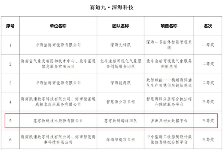 喜訊!蒼穹數(shù)碼斬獲2025年“數(shù)據(jù)要素×” 大賽海南分賽深海科技三等獎