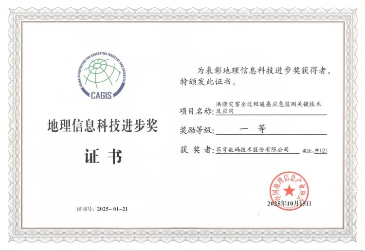 大會(huì)在開(kāi)幕式環(huán)節(jié),頒發(fā)了多個(gè)獎(jiǎng)項(xiàng)。蒼穹數(shù)碼榮獲“地理信息科技進(jìn)步一等獎(jiǎng)”及“2025年科技創(chuàng)新型優(yōu)秀單位”等榮譽(yù),并連續(xù)多年再次入圍“2025地理信息產(chǎn)業(yè)百?gòu)?qiáng)企業(yè)”;大會(huì)發(fā)布的《2025年測(cè)繪地理信息自主創(chuàng)新產(chǎn)品公示》,蒼穹地理信息平臺(tái)(KQGIS )、蒼穹遙感影像智能解譯平臺(tái)雙雙上榜。