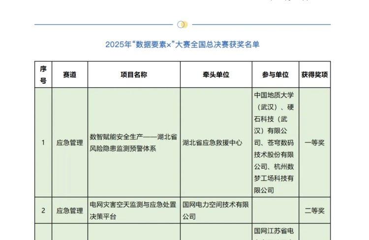 喜報(bào)!蒼穹數(shù)碼聯(lián)合團(tuán)隊(duì)榮獲2025年“數(shù)據(jù)要素×”大賽全國總決賽應(yīng)急管理賽道一等獎