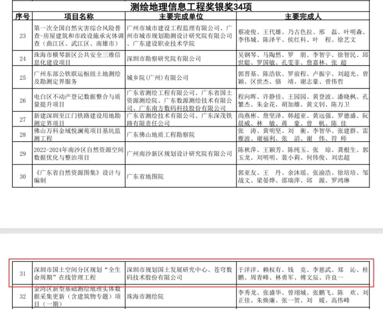 喜訊!深圳國土空間分區(qū)規(guī)劃“全生命周期”在線管理工程榮獲金粵自然資源科學(xué)技術(shù)獎(jiǎng)