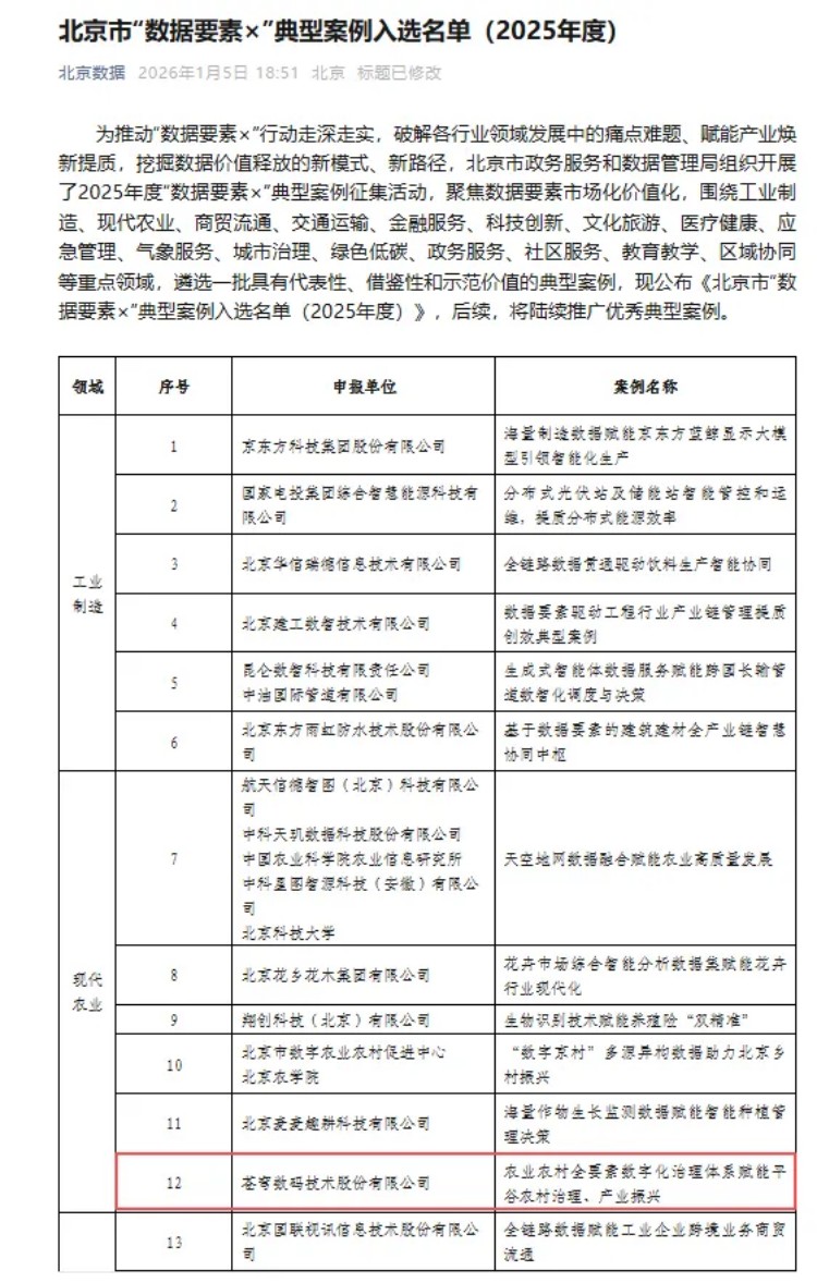 2025年,蒼穹數(shù)碼憑借扎實(shí)的項(xiàng)目實(shí)踐與創(chuàng)新的技術(shù)方案,屢獲行業(yè)權(quán)威認(rèn)可,品牌影響力持續(xù)提升。在重要賽事與案例評選中,“農(nóng)業(yè)農(nóng)村全要素?cái)?shù)字化治理體系賦能平谷農(nóng)村治理、產(chǎn)業(yè)振興”項(xiàng)目入選2025年度北京市“數(shù)據(jù)要素×”典型案例;“歙縣數(shù)字鄉(xiāng)村治理一張網(wǎng)”榮膺2025智慧城市先鋒榜優(yōu)秀案例二等獎(jiǎng)……多項(xiàng)成果彰顯了公司在數(shù)據(jù)要素賦能農(nóng)業(yè)農(nóng)村領(lǐng)域的領(lǐng)先實(shí)力。